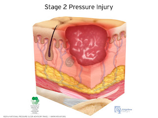 Lesão por pressão Categoria / Estágio II: Perda da pele em sua espessura parcial com exposição da derme