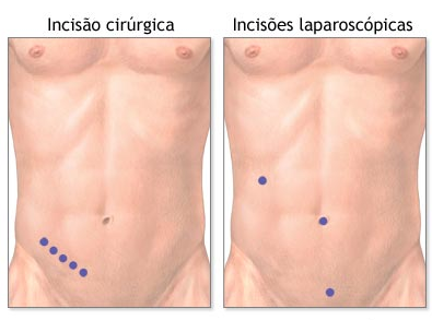 Método laparoscópico: Este procedimento utiliza várias pequenas incisões e três ou mais laparoscopes (pequenos tubos finos com câmeras de vídeo em anexo) para visualizar o interior do abdômen durante a