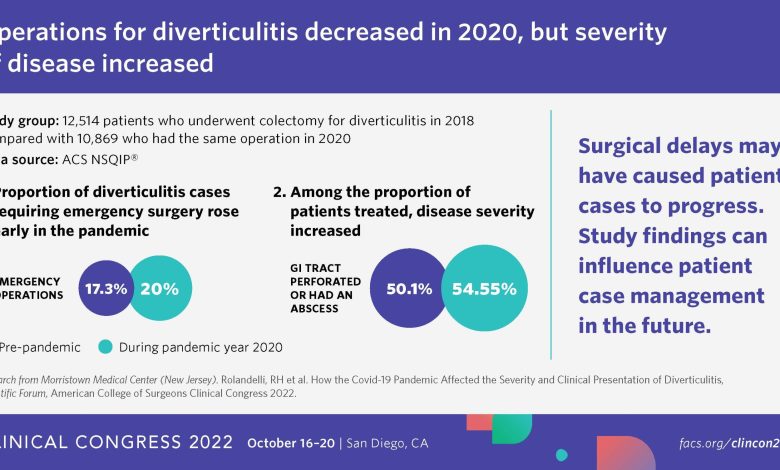 As operações para diverticulite diminuíram em 2020, mas a gravidade da doença aumentou. Crédito: American College of Surgeons