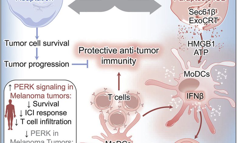 Jessica K. Manndula et al, Ablação da quinase de estresse do retículo endoplasmático PERK induz paraptose e interferon tipo I para promover respostas de células T antitumorais, Célula cancerosa (2022). DOI: 10.1016/j.ccell.2022.08.016