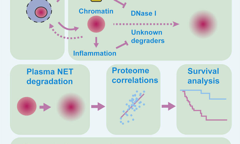 Iker Valle Aramburu et al, Perfil proteômico funcional liga a depuração deficiente do DNA ao aumento da mortalidade em indivíduos com pneumonia grave por COVID-19, Imunidade (2022). DOI: 10.1016/j.immuni.2022.11.007