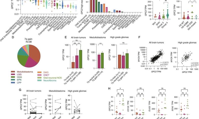 Usando o sequenciamento de RNA, os pesquisadores descobriram que o GPC2 é expresso em vários tipos de tumores cerebrais e é altamente expresso em tumores embrionários e meduloblastomas. Eles não encontraram diferença significativa na expressão de GPC2 em tumor tecido retirado no momento do diagnóstico e no momento da recidiva, sugerindo que a imunoterapia dirigida por GPC2 poderia funcionar em qualquer situação.