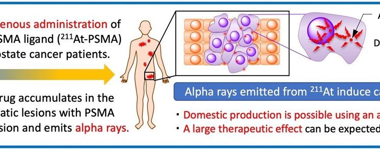 Terapia alfa direcionada usando um ligante PSMA marcado com astatina ([At-211]PSMA5). Crédito: Tadashi Watabe (Universidade de Osaka)