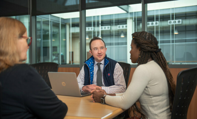 Chris Gillette, Ph.D., professor associado de Estudos de PA da Escola de Medicina da Wake Forest University, colabora com colegas. Crédito: Escola de Medicina da Universidade de Wake Forest