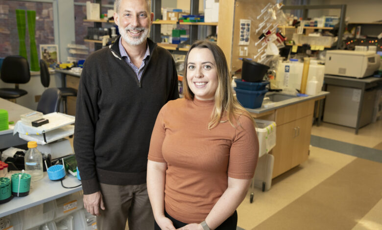 Jeffrey Rathmell, PhD, (à esquerda) e Kelsey Voss, PhD, lideraram uma equipe multidisciplinar que identificou o metabolismo do ferro nas células T como um alvo potencial para o tratamento do lúpus. Crédito: Vanderbilt University Medical Center
