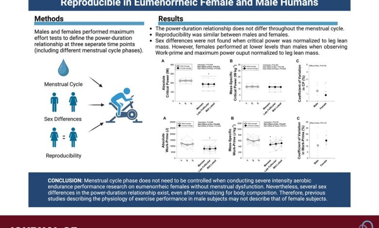 Jessica J. James et al, A relação força-duração do exercício é igualmente reprodutível em humanos eumenorréicos femininos e masculinos, Jornal de Fisiologia Aplicada (2022). DOI: 10.1152/japplphysiol.00416.2022