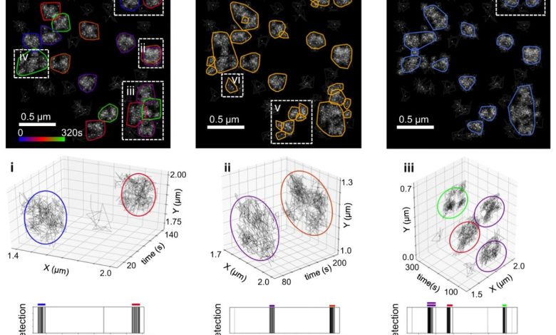 Tristan P. Wallis et al, análise de nanoclustering derivada de trajetória superresolvida usando indexação espaço-temporal, Natureza Comunicações(2023). DOI: 10.1038/s41467-023-38866-y