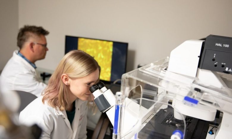 A equipe de pesquisa de Kathryn Hayes e Brandon Jutras encontrou dois agentes antimicrobianos que eram mais eficazes no tratamento do agente causador da sífilis Treponema pallidum em um ambiente de laboratório. Foto de Max Esterhuizen para Virginia Tech.