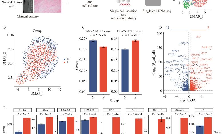 O estudo, publicado em Fronteiras da medicinaenvolveu o recrutamento de pacientes com OPLL T e controlam pacientes do terceiro hospital da Universidade de Pequim, com tecidos de ligamentos ossificados obtidos de procedimentos cirúrgicos. O sequenciamento de RNA único de célula (scRNA-seq) foi realizado para analisar as características da população celular e os padrões de expressão gênica patológica.