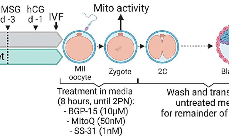 A comunicação mitocôndria-nuclear na fertilização determina o comprimento dos telômeros da ICM. Crédito: Comunicações da natureza (2025). Doi: 10.1038/s41467-025-57794-7
