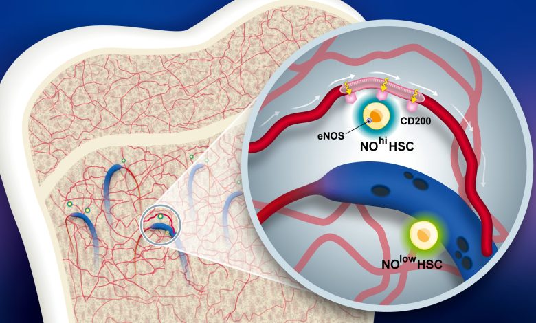 Eles também identificaram que a sobrevivência desses nãooi Os HSCs dependiam de sua localização perto de vasos sanguíneos especializados com uma forma distinta da curva de cabelo. Os cientistas concluíram que a natureza curva desses capilares afeta a dinâmica do fluxo sanguíneo, criando aumento do estresse de cisalhamento – a força do sangue se movendo ao longo das paredes dos vasos. A tensão de cisalhamento regula o comportamento das células -tronco aumentando os níveis NO, que desempenham um papel importante na manutenção, sobrevivência e função das células -tronco modulando as vias de sinalização celular.