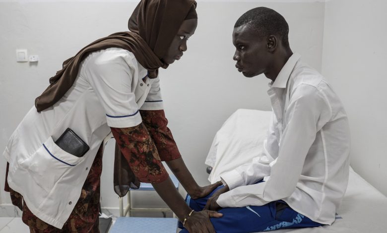 O estudante de neurologia Henriette Dieng examina Abdou Diop, um paciente com neuropatia genética na clínica de Pedro Rodriguez em Dakar, Senegal, sexta -feira, 10 de janeiro de 2025. Crédito: AP Photo/Annika Hammerschlag