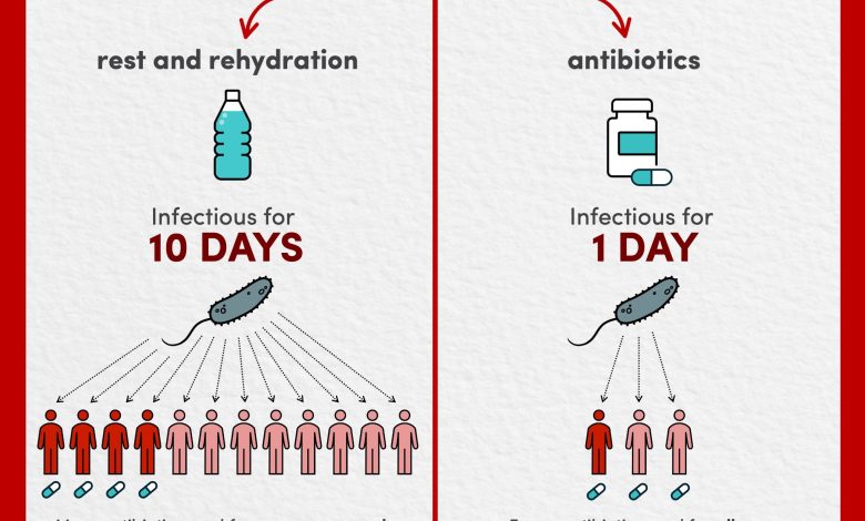 A chave para a descoberta dos pesquisadores é o fato de que os antibióticos tornam as pessoas menos infecciosas. A medicação é geralmente reservada para pessoas que são mais severamente infectadas porque casos moderados se recuperam rapidamente com descanso e reidratação. Mas, embora os antibióticos possam não ajudar a maioria das pessoas a se sentir melhor, elas reduzem a quantidade de tempo que alguém é infeccioso por um fator de 10.