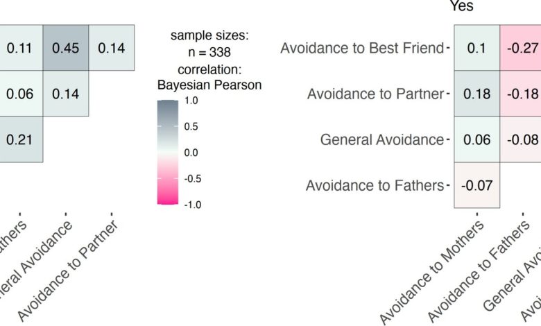 O padrão de associações entre a prevenção de apego em diferentes relações entre os participantes que perderam os pais (sim) em comparação com aqueles que não (não). Crédito: Relatórios científicos (2025). Doi: 10.1038/s41598-025-89467-2