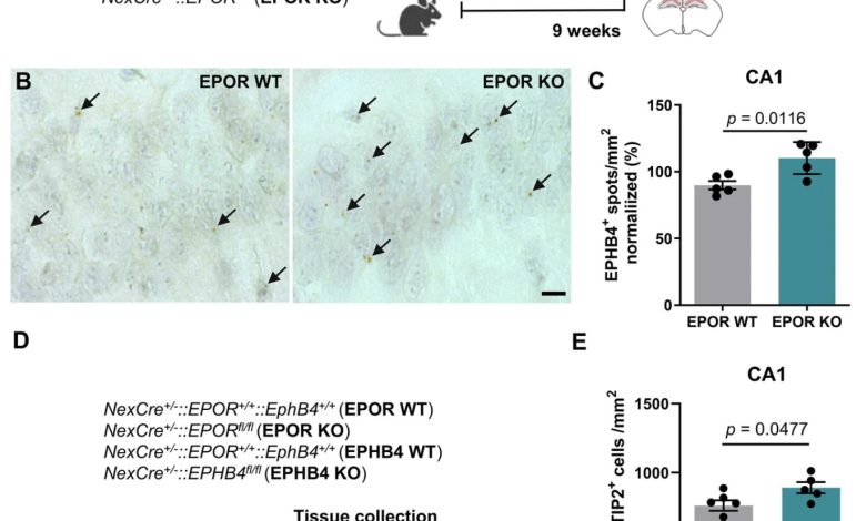 Expressão de EPHB4 no hipocampo e as primeiras dicas de uma inter -relação regulatória com o EPOR. Crédito: Psiquiatria molecular (2025). Doi: 10.1038/s41380-025-03230-7