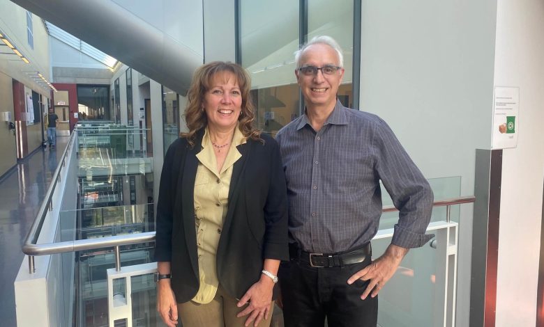 A professora de química Anne Marinier, diretora da unidade de descoberta de drogas da IRIC, e professora de medicina Marc Therrien, CEO da IRIC e diretora de sua unidade de pesquisa de sinalização intracelular. Crédito: IRIC