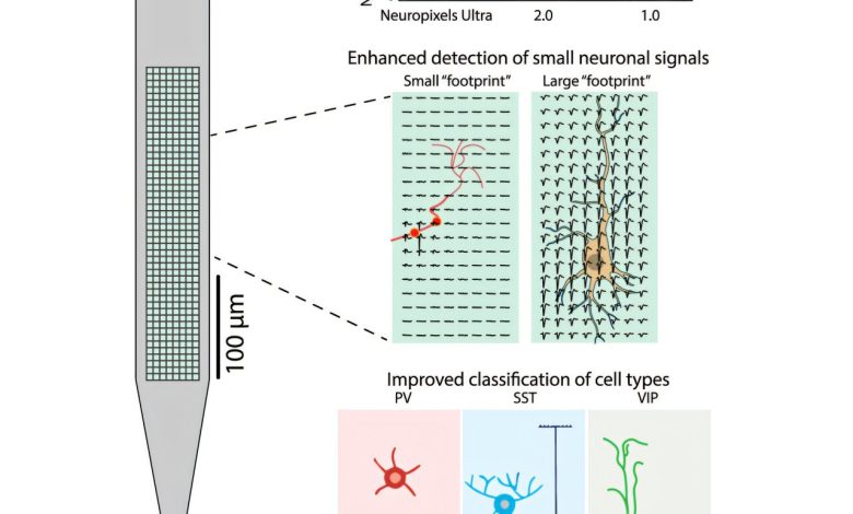 “Essas pequenas pegadas espaciais, difíceis de detectar com sondas de menor densidade, são consistentemente detectadas com neuropixels ultra”, observaram os cientistas. Eles também descobriram que as pegadas espaciais dos tipos de células que foram identificadas geneticamente eram diferentes para cada tipo de célula. Essas informações podem ajudar, por exemplo, ao determinar quais células estão presentes e sua atividade elétrica distinta.