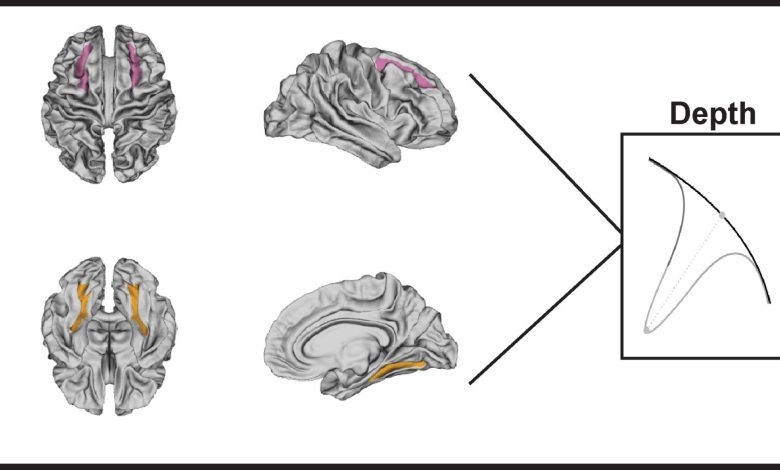 Ilustração das regiões morfológicas sulcais com representações de largura e profundidade. Crédito: Comunicações cerebrais (2025). DOI: 10.1093/braincomms/fcaf345