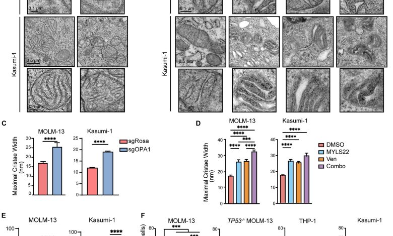 A inibição farmacológica da OPA1 prejudica a morfologia das cristas e sensibiliza a LMA humana à apoptose. Crédito: Avanços da Ciência (2025). DOI: 10.1126/sciadv.adx8662