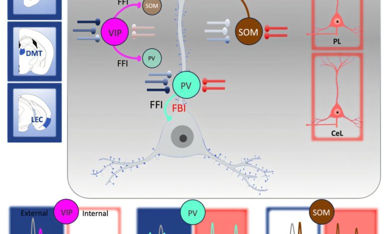 Especificamente, eles descobriram que as INs de somatostatina medeiam a inibição por feedback e exibem alterações de plasticidade induzidas pela aprendizagem durante tarefas de aprendizagem associativa e de extinção, enquanto as INs VIP medeiam a desinibição feedforward e respondem a sinais sensoriais salientes.