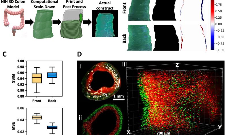 Em artigo publicado recentemente na revista Ciência Avançadapesquisadores da Escola de Engenharia Samueli da UC Irvine descrevem sua criação de uma réplica de aproximadamente 5 por 10 milímetros que incorpora características estruturais essenciais de um cólon, incluindo curvatura liminar, organização celular em múltiplas camadas e a formação espontânea de reentrâncias semelhantes a criptas.