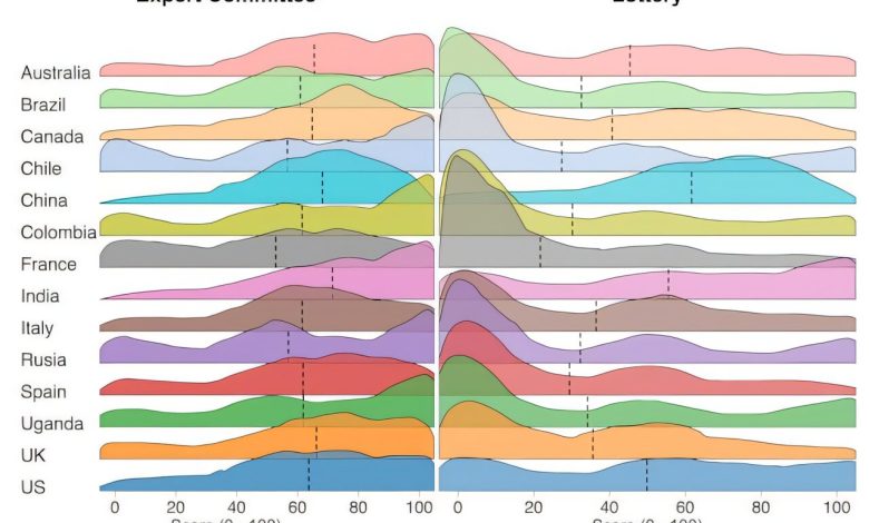Em média, os comités de peritos obtiveram 61 pontos, em comparação com apenas 37 para as lotarias. Embora a alocação de peritos fosse mais aceitável em todo o lado, o apoio às lotarias variou acentuadamente entre países – desde surpreendentemente baixo em França e no Chile até relativamente elevado na China, na Índia e nos EUA.