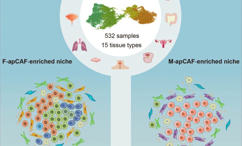 Os pesquisadores do Centro Médico do Sudoeste da UT identificaram duas populações distintas de células conhecidas como fibroblastos associados ao câncer apresentados por antígenos (APCAFs) que parecem apoiar a sobrevivência e o crescimento de tumores malignos. Suas descobertas, relatadas em Células cancerígenasum dia poderia levar a novas terapias para câncer notoriamente difícil de tratar, incluindo câncer de pâncreas e câncer colorretal avançado (CRC) que se espalhou por todo o abdômen, conhecido como metástase peritoneal.