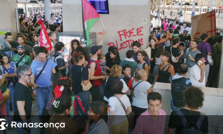 No sábado, uma parte dos manifestantes pela libertação dos quatro cidadãos portugueses que participaram na flotilha humanitária Global Sumud, e que chegam esta noite a Lisboa, deslocou-se para o interior da estação de comboios do Rossio e um deles foi eletrocutado ao tentar subir para a parte superior de um comboio.