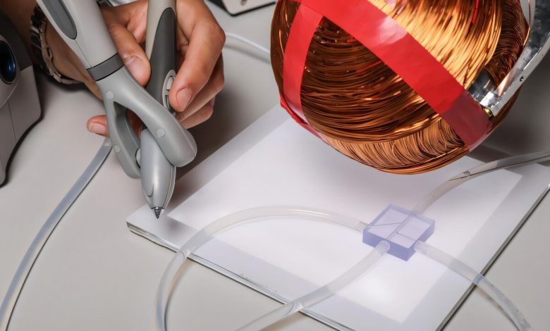 O conceito do MagFlow foi originalmente descrito em 2020 como um dispositivo de polímero plano em forma de fita (em contraste com os instrumentos endovasculares tradicionais, que são redondos) com ponta magnética. Agora, em colaboração com o neurorradiologista intervencionista Pascal Mosimann, do Toronto Western Hospital (Canadá), Sakar e Lucio Pancaldi, recém-formado na EPFL, transformaram este conceito em um microcateter totalmente funcional. Duas folhas de polímero coladas permitem que o corpo do dispositivo infle “como uma mangueira de bombeiro” para fornecer líquidos biomédicos finos ou viscosos.