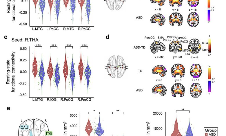 Diferenças nas características do cérebro entre os grupos ASD e TD. Crédito: Psiquiatria translacional (2025). Doi: 10.1038/s41398-025-03566-2