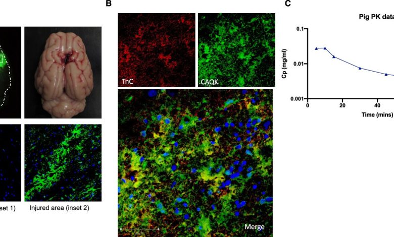 O CAQK tem como alvo lesão cerebral no CCI de porco. Crédito: Medicina molecular do EMBO (2025). Doi: 10.1038/s44321-025-00312-5