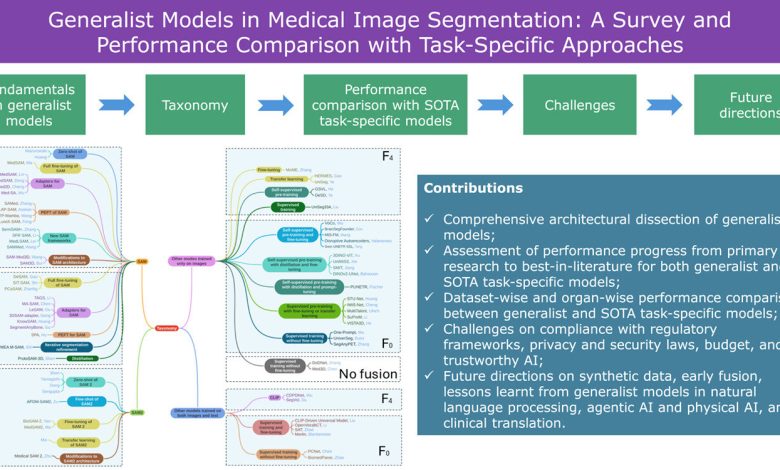 Andrea Moglia et al, Modelos generalistas em segmentação de imagens médicas: uma pesquisa e comparação de desempenho com abordagens específicas de tarefas, Fusão de informações (2026). DOI: 10.1016/j.inffus.2025.103709