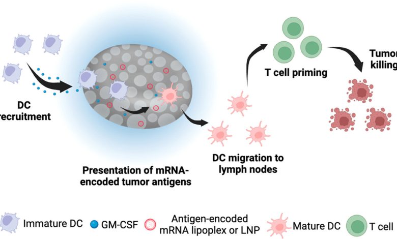 As vacinas de mRNA já provaram o seu valor em doenças infecciosas, mas o cancro apresenta um desafio mais difícil. Para ter sucesso, a vacina não deve apenas desencadear anticorpos, mas também activar células T que possam reconhecer e destruir tumores. Isso requer células dendríticas (os professores mestres do sistema imunológico) para captar e processar o mRNA de maneira eficiente.