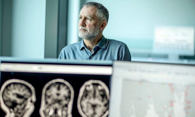 O neurologista da Stanford Medicine, Mike Greicius, está buscando respostas para o mal de Alzheimer saindo da caixa da placa amilóide. Crédito: Timothy Archibald