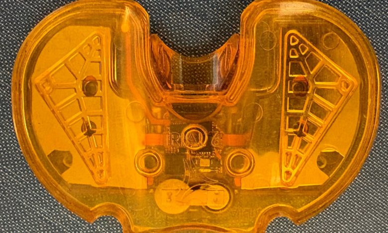 O Verasense é um sensor de uso único e sem fio que mede carga em tempo real, equilíbrio e alinhamento cirúrgico do joelho durante a substituição total do joelho, fornecendo aos cirurgiões dados para otimizar o posicionamento do implante e o equilíbrio dos tecidos moles. Chapman trabalhou no dispositivo como Ph.D. estudante no Dartmouth College e o concluiu no URI. Crédito: URI