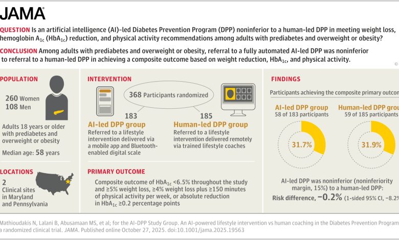 Nestoras Mathioudakis et al. Uma intervenção de estilo de vida baseada em IA versus treinamento humano no programa de prevenção de diabetes, JAMA (2025). DOI: 10.1001/jama.2025.19563