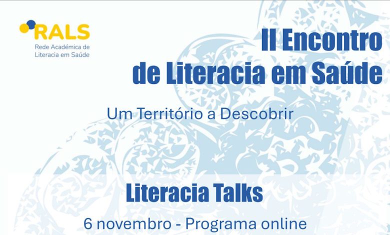 A Rede Académica de Literacia em Saúde (RALS) marca na agenda os dias 6 e 7 de novembro de 2025 para a realização do II Encontro de Literacia em Saúde, subordinado ao tema “Um território a Descobrir”. O evento desdobra-se em dois formatos: no primeiro dia, as Literacia Talks decorrem em linha, seguidas de um encontro presencial a 7 de novembro na Escola Superior de Saúde do Instituto Politécnico de Viana do Castelo.