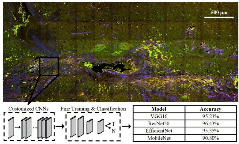 Esses marcadores ajudam a distinguir entre tecido saudável e canceroso. Para interpretar as imagens, os pesquisadores aplicaram as técnicas de aprendizado de máquina (ML) e de aprendizado profundo. Um algoritmo ML e quatro redes neurais convolucionais (CNNs) foram treinadas para classificar os tipos de tecido.