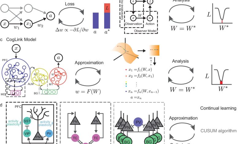 O CogLink une mecanismos neurais e algoritmos para otimizar parâmetros para realizar tarefas cognitivas complexas. Crédito: Comunicações da Natureza (2025). DOI: 10.1038/s41467-025-63994-y