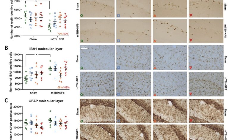 “Ratas fêmeas foram submetidas diariamente ao mTBI (impacto lateral) seguido de NFS (90 s) durante cinco dias, seguido de 16 semanas de recuperação”, explicaram os autores.