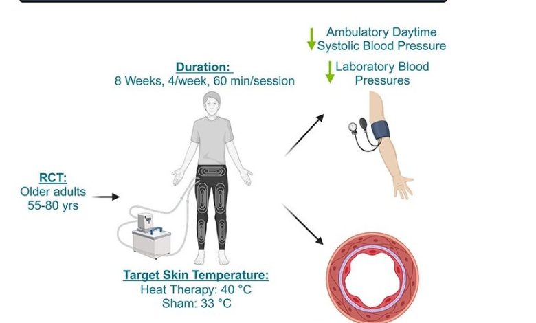 Ysabella I. Ruiz-Pick et al, A terapia térmica domiciliar reduz a pressão arterial e melhora a função endotelial em adultos mais velhos, Jornal de Fisiologia Aplicada (2025). DOI: 10.1152/japplfisiol.00977.2024