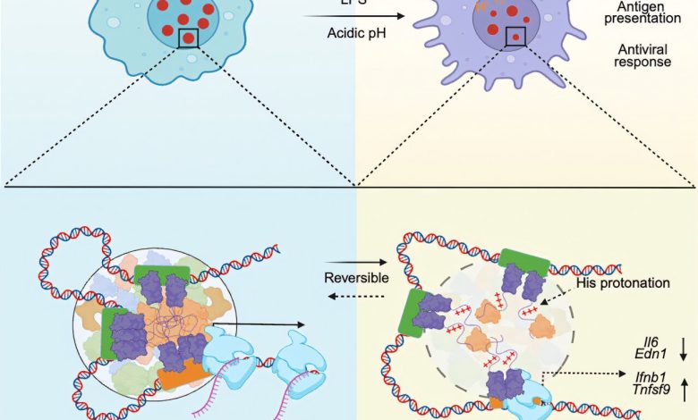 Zhongyang Wu et al, Regulação de respostas inflamatórias por condensados transcricionais dependentes de pH, Célula (2025). DOI: 10.1016/j.cell.2025.06.033