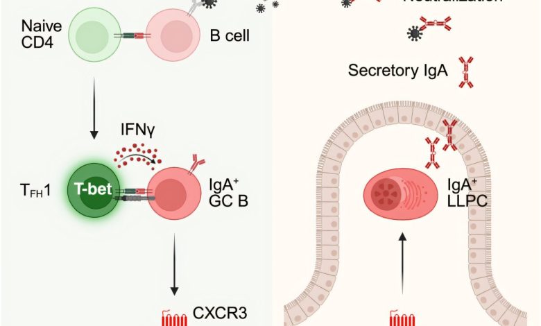 Kei Haniuda et al, A infecção viral da mucosa provoca respostas de IgA de longa duração através de células T auxiliares foliculares tipo 1, Célula (2025). DOI: 10.1016/j.cell.2025.07.022