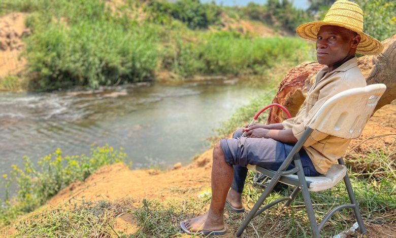Em toda a África, os papa-moscas humanos são obrigados a servir de isca para capturar moscas negras perto dos rios. Crédito: projeto DISSECT