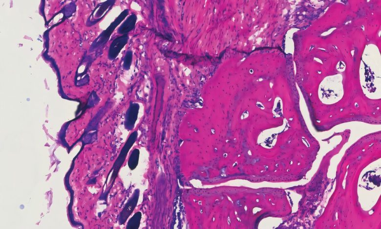 Histologia mostrando a articulação do tornozelo de um camundongo quatro dias após receber o novo tratamento com anticorpos, V11 sFc. Crédito: laboratório Ravetch,. Universidade Rockefeller
