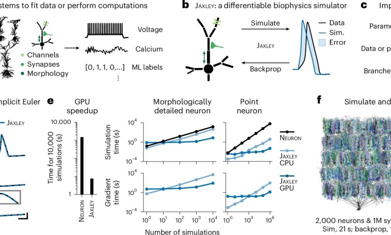 Michael Deistler et al, Jaxley: a simulação diferenciável permite o treinamento em larga escala de modelos biofísicos detalhados de dinâmica neural, Métodos da Natureza (2025). DOI: 10.1038/s41592-025-02895-w