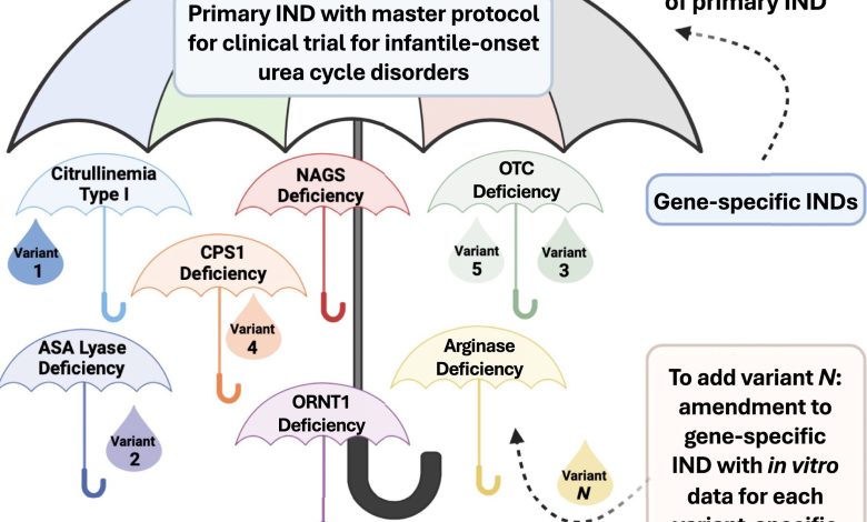Esquema do ensaio clínico do protocolo mestre “guarda-chuva de guarda-chuvas”. Crédito: O Jornal Americano de Genética Humana (2025). DOI: 10.1016/j.ajhg.2025.10.006