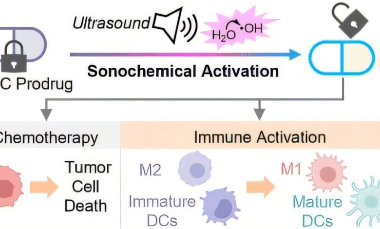 A equipe de Hu está adotando uma abordagem diferente. Em vez de depender de gatilhos internos, eles estão usando ultrassom, uma tecnologia segura e não invasiva comumente usada em imagens médicas. Ao contrário dos métodos de ativação baseados em luz, que lutam para penetrar nos tecidos profundos, o ultrassom pode atingir tumores localizados nas profundezas do corpo e ser direcionado com precisão.