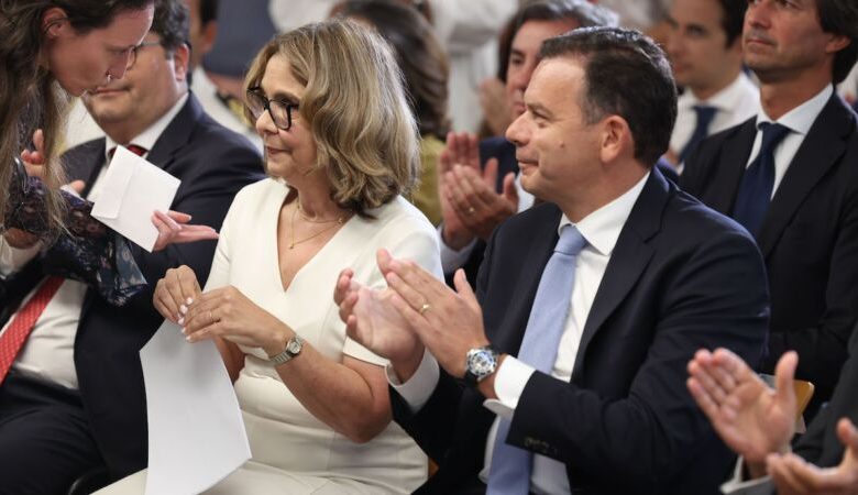 O primeiro-ministro, Luis Montenegro, acompanhado pela ministra da Saúde, Ana Paula Martins