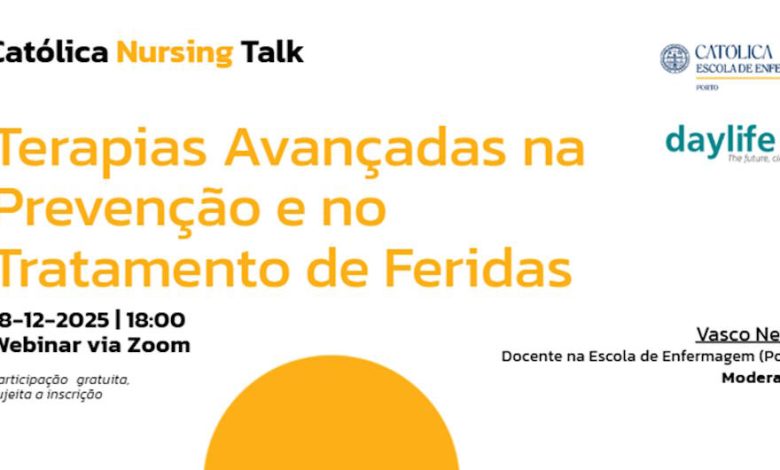 É neste contexto que a Escola de Enfermagem (Porto) da Universidade Católica Portuguesa promove a próxima sessão das Católica Nursing Talks 2025, dedicada ao tema “Terapias Avançadas na Prevenção e Tratamento de Feridas”, agendada para hoje, dia 18 de dezembro de 2025, pelas 18h00. A iniciativa decorre em formato online, é de participação gratuita e requer inscrição prévia obrigatória. A sessão conta com a parceria da Daylife.